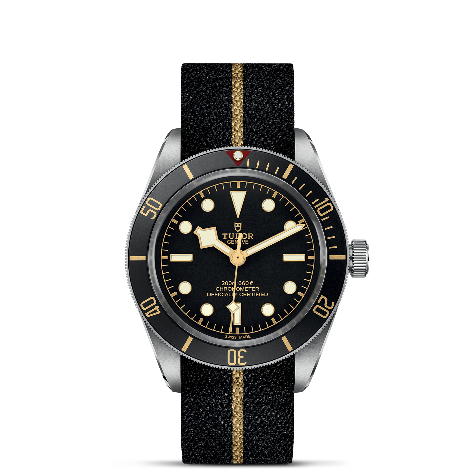 Steel screw-down winding crown, with the TUDOR rose in relief, with circular satin-brushed steel winding crown tube