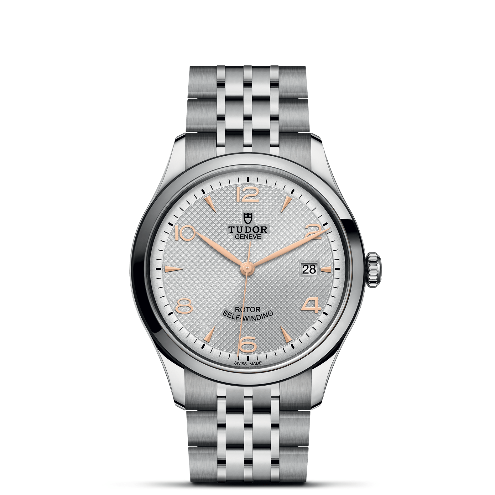 Steel bracelet, 7 rows, satin-brushed external links, polished centre links, with folding clasp and safety catch