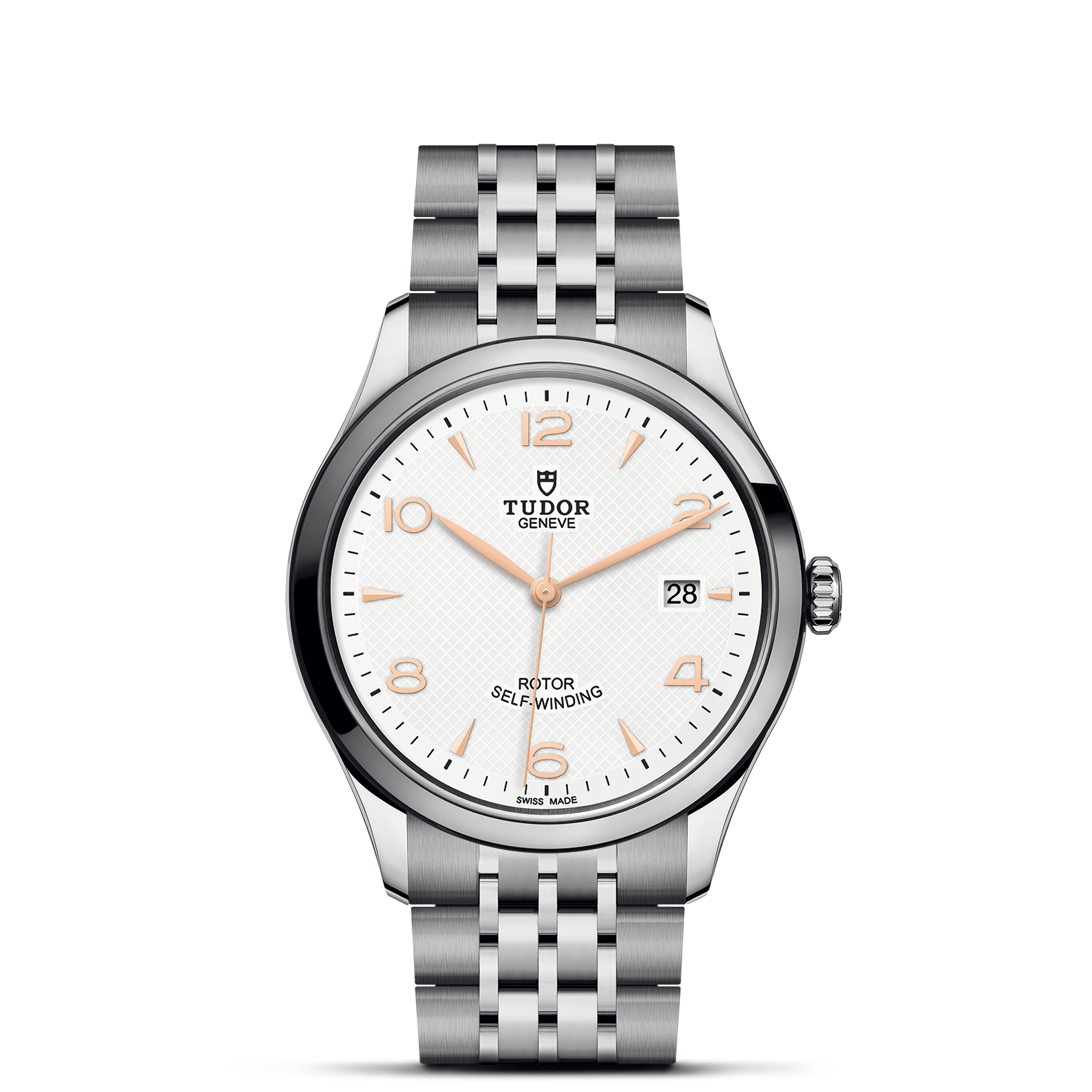 Steel bracelet, 7 rows, satin-brushed external links, polished centre links, with folding clasp and safety catch
